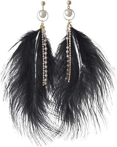 Amazon Com L Vow Punk Style Natural Feather Long Dangle Earrings