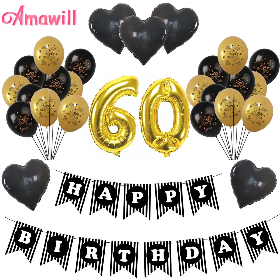 Amawill 60th Birthday Party Decorations Gold Black Latex Globos