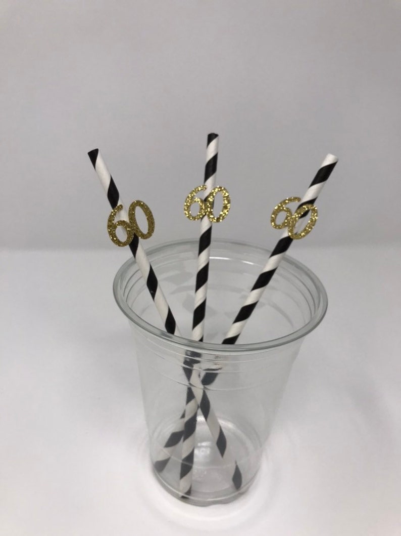 Black And Gold Straws For 60th Party 10ct 60th Birthday Party