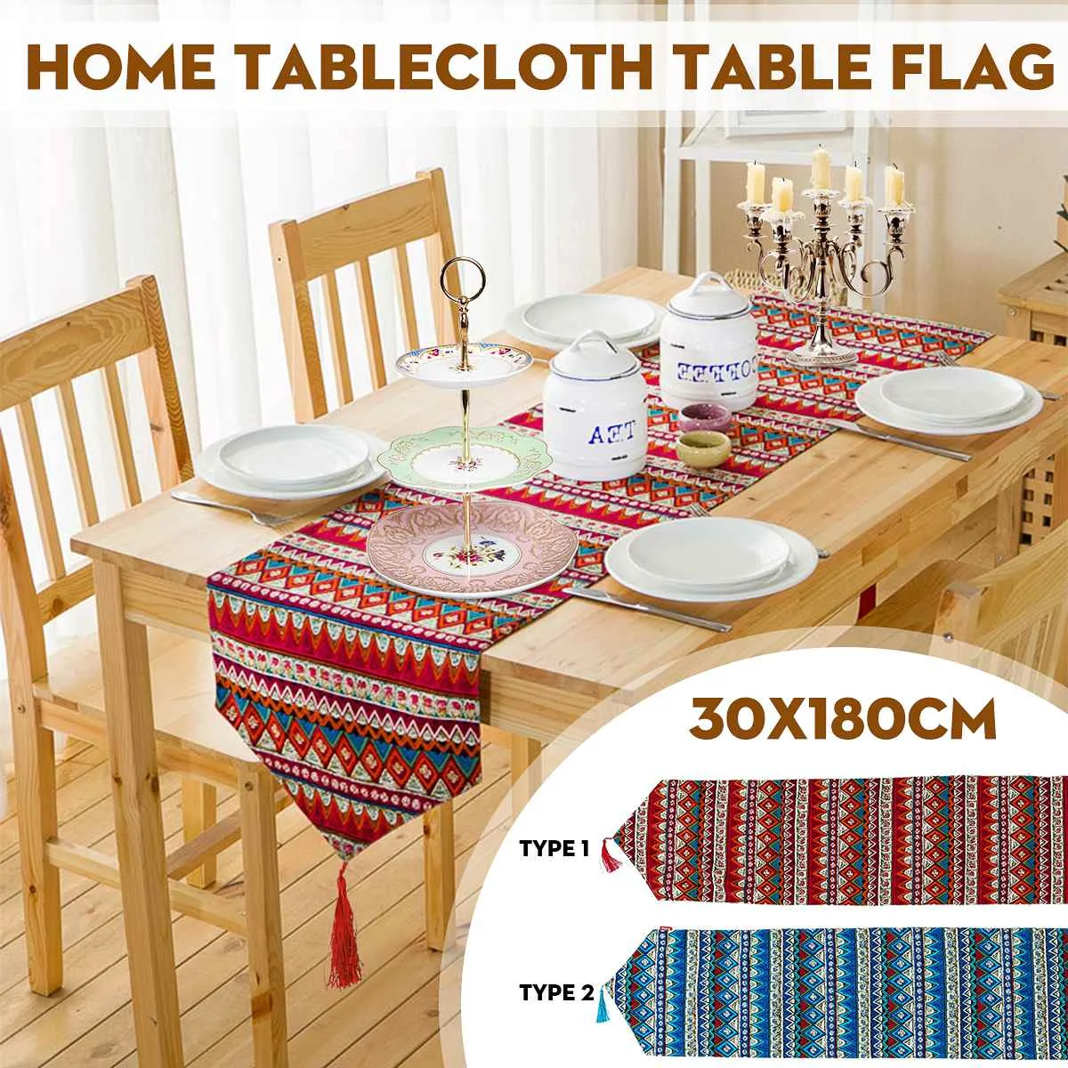 30x180cm Ethnic Style Cotton And Linen Dining Table Runner Desk