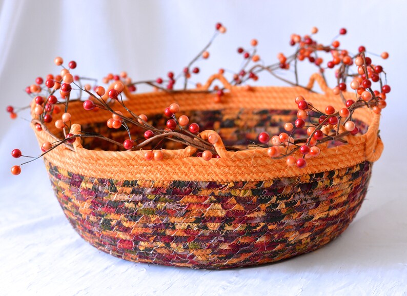 Textile Art Basket Fall Rope Coiled Basket Farmhouse Home Etsy