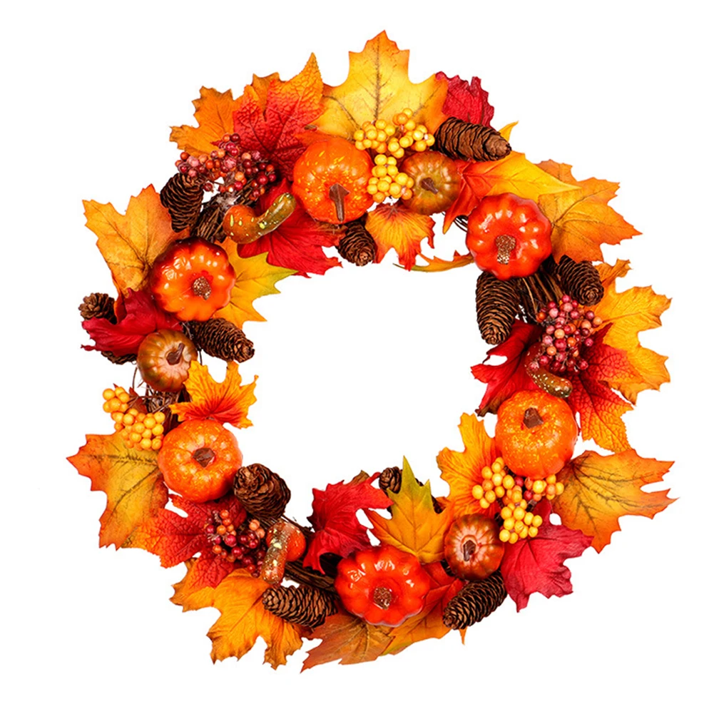 2019 Halloween Wreath Maple Artificial Pumpkin Wreath Autumn Door