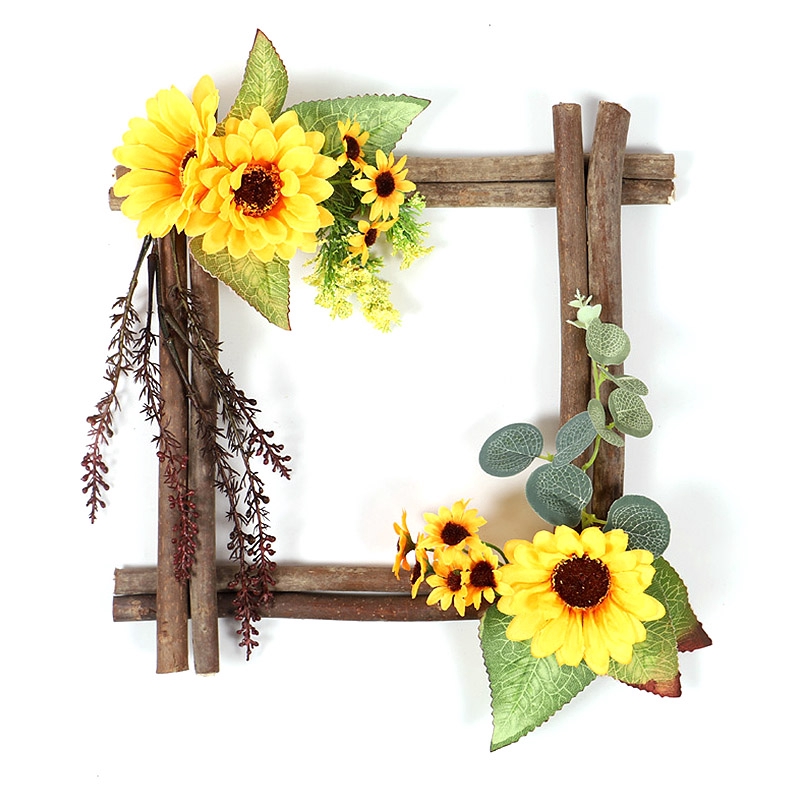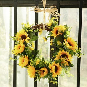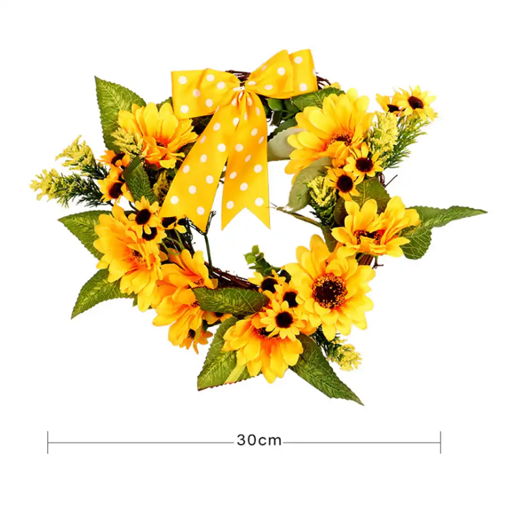Christmas 32cm Rattan Silk Sunflower Wreath Home Front Door