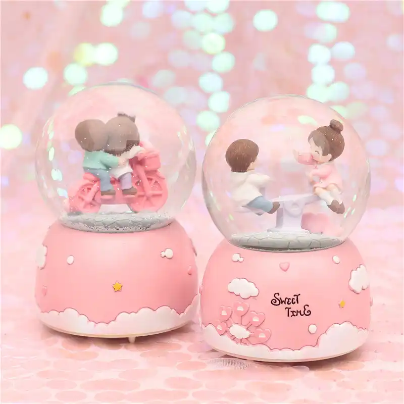 Romantic Couple Crystal Snow Globes Glass Music Box Snowball Home